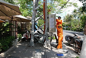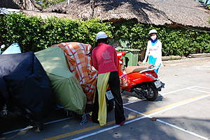 В нескольких десятках метров от дороги расположен вытянутый пляж и Южно-Китайское море, а с другой её стороны возвышаются разнозвёздные отельные комплексы.