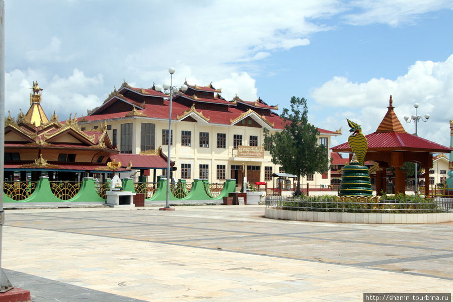 Спустившись вниз к рынку, мы сели в лодку и отправились … к другому монастырю. На этот раз нам предоставилась возможность посетить самый высоко почитаемый и самый яркий с архитектурной точки зрения монастырь - Пхаунг Дау У. Он находится уже не на берегу, а прямо на озере. Но построен не на сваях (как десяток других соседних монастырей — мы по пути проплыли мимо нескольких), а на твердой земле. Вернее, на специально насыпанном для него острове.