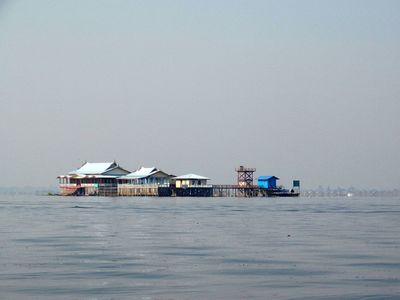 стоящие только в им присущей позе. Они гребут не руками, а ногой. И создается впечатление, что стоят они в воде на деревянной ноге, издали очень похожей на ходулю.Озеро Инле известно своими "плавающими огородами".