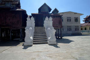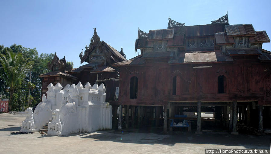 Первоначально мы вообще не планировали останавливаться в Ньяунг-Шве: самолет был задержан, и стало ясно, что полностью положенную программу мы физически не успеем сделать, но, проезжая по городу, не могли не обратить внимания, что в штате Шан Мьянмы все отличается от Мандалайской и более южных провинций — и люди (шаны вообще очень обособленный народ), и храмы, да и сам город. Поэтому, проезжая мимо очередного произведения шанских зодчих, заставили водителя остановиться и все же провести осмотр этого города, который, вообще говоря, достоин этой остановки и зря включен в программу только в малом количестве туров.