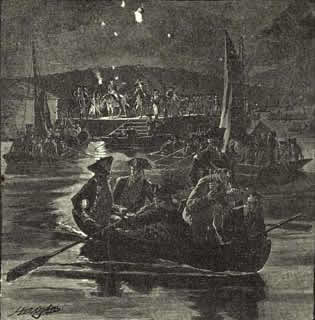 7. Рисунок, иллюстрирующий переправу сил Армии Вашингтона на Манхеттен в районе Бруклинского моста. Тогда, естественно, моста еще не было