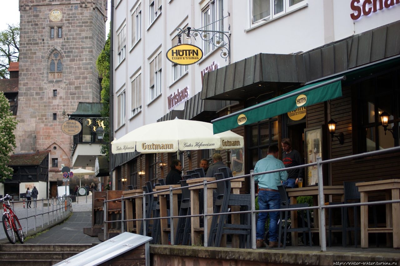 В ресторанах Нюрнберга традиционно принято подавать по 6, 8, 10, или 12 колбасок с квашеной капустой, картофельным салатом или просто с хреном. Но выбрать ресторан, который бы помог ответить на вопрос, что же делает нюрнбергские колбаски такими популярными, совсем не просто. На помощь приходит крупнейший в мире сайт о путешествиях Tripadvisor, на котором можно посмотреть миллионы отзывов и комментариев о ресторанах, гостиницах, достопримечательностях и развлечениях по всему миру. На запрос «Нюрнберг – рестораны немецкой кухни» под № 2 оказался ресторан Wirtshaus Hütt'n, очень удачно расположенный в Старом городе в 5 минутах ходьбы от места нашего временного проживания.