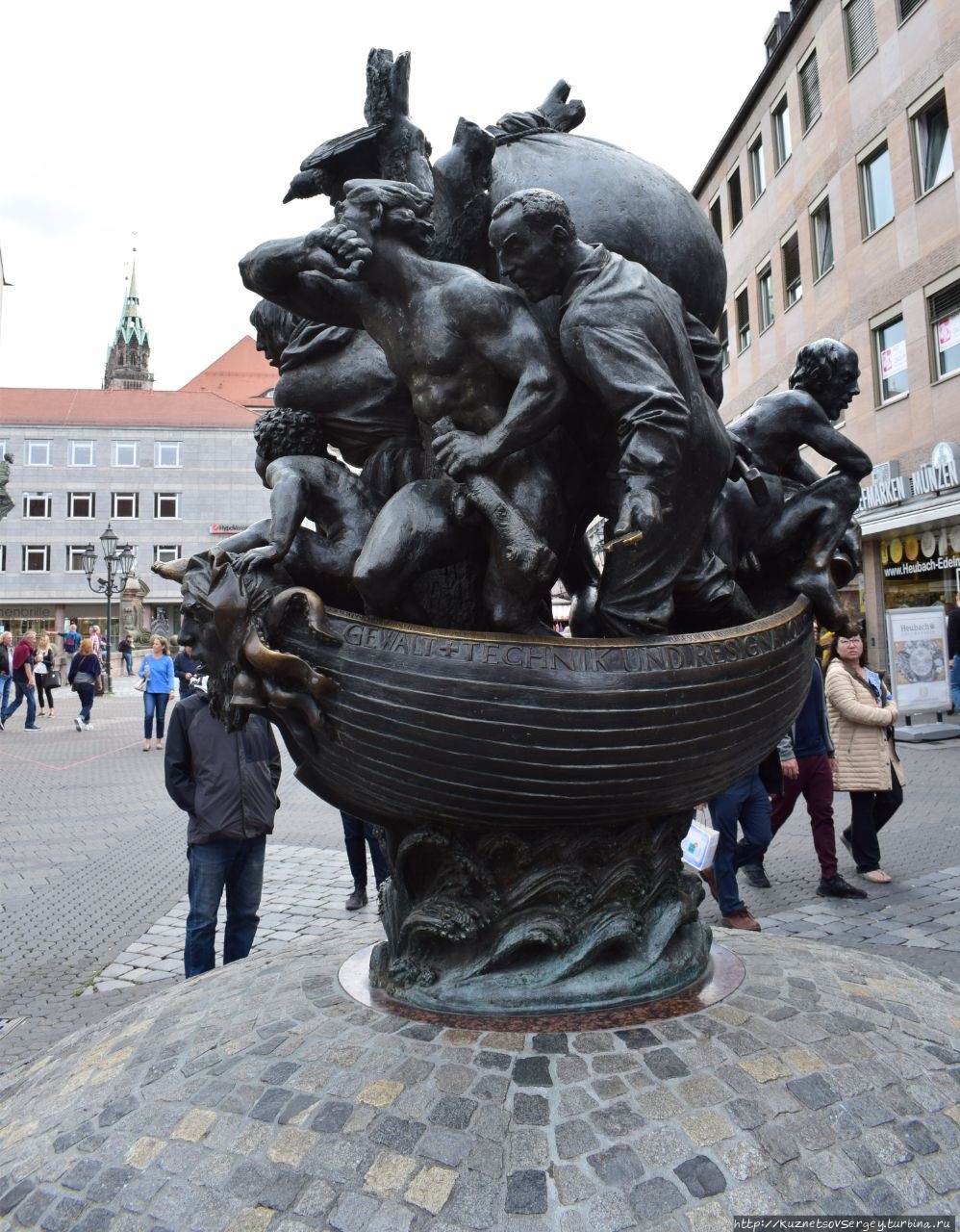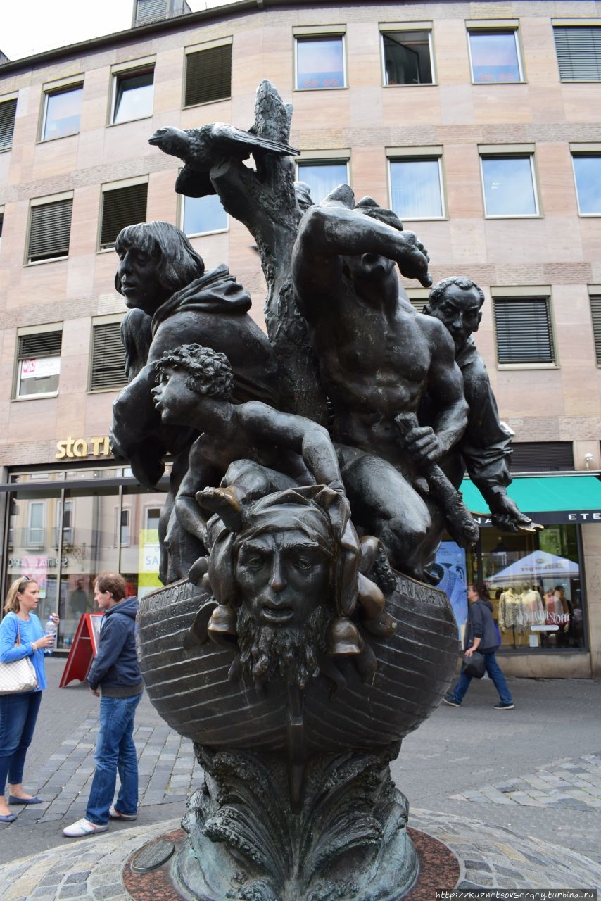 Мы видим фонтан каждый раз, когда проходим по главной пешеходной улице города от вокзала к Рыночной площади. Он стоит на спуске к реке.