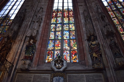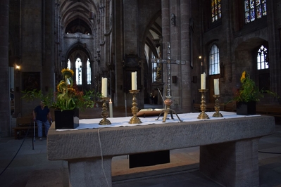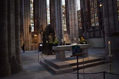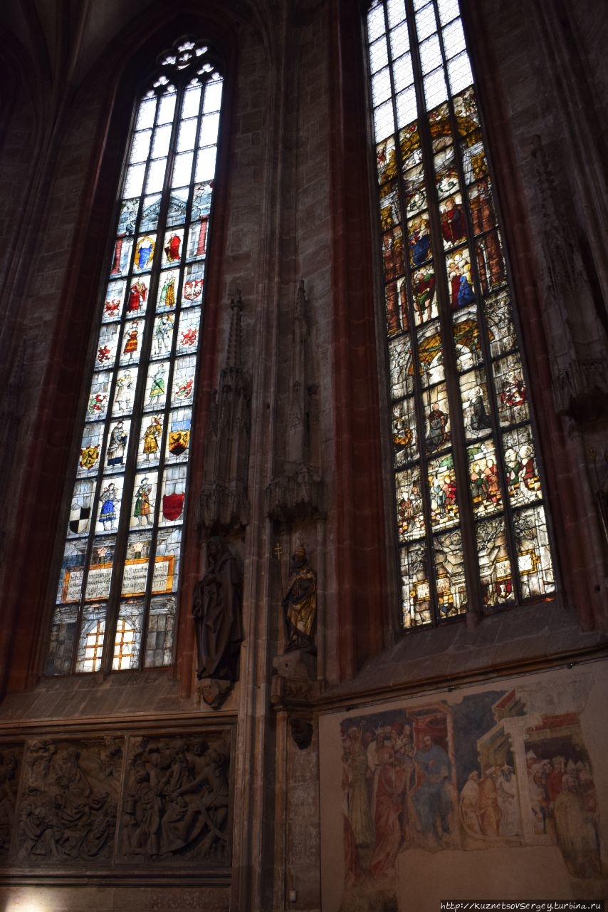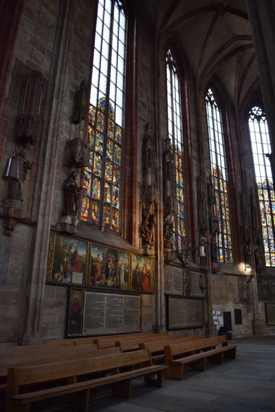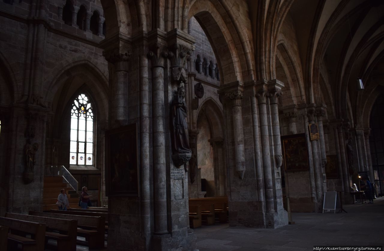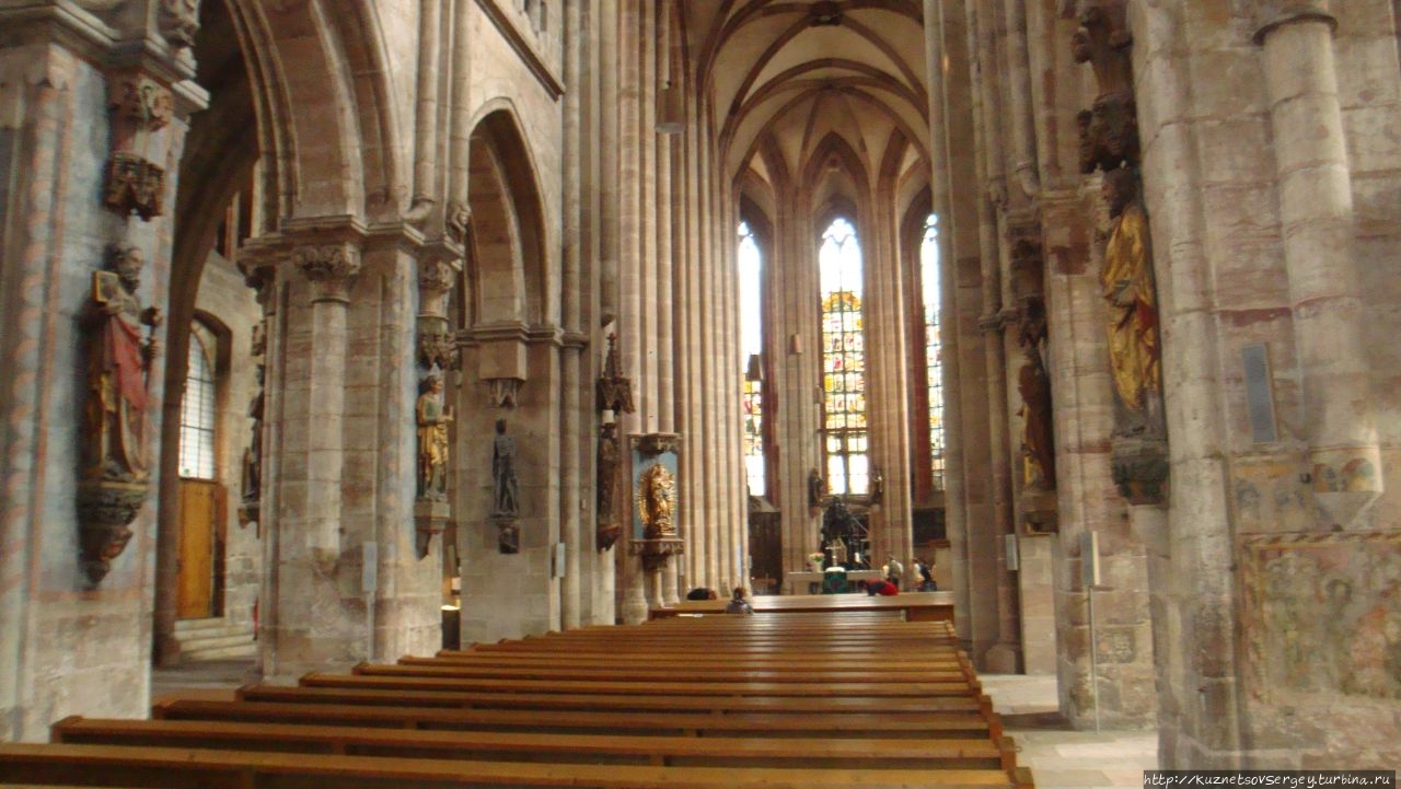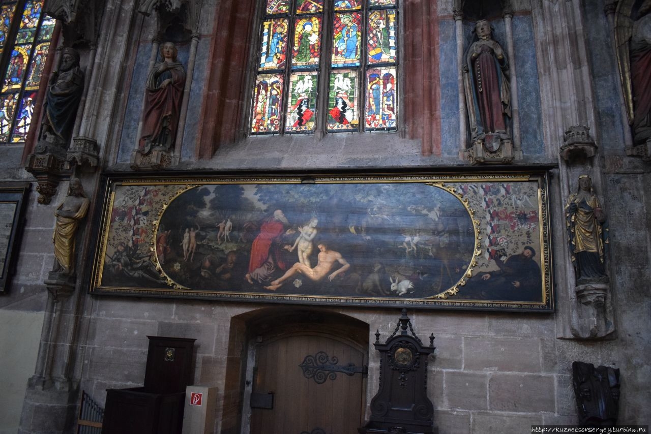 Церковь и ее интерьеры пострадали во время бомбежек. То, что мы видим сегодня – кропотливая реконструкция, как и многое в Нюрнберге.