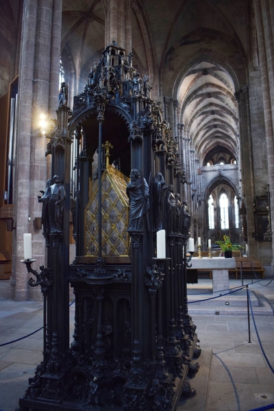 В начале церковь была католической, затем – лютеранской. Святой Себальд – местный отшельник, мощи которого хранятся в раке в этой церкви. Для россиян эта рака вызывает особые эмоции, так как ее копию, находящуюся в московском Пушкинском музее изобразительных искусств, многие знают очень хорошо.