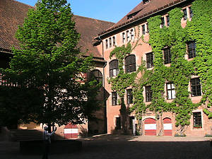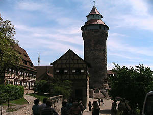 Из крепости по мощеным тротуарам можно спустится на площадь Тиргертнерплатц, которая примечательна фахверковыми зданиями и карикатурой на знаменитого кролика Дюрера