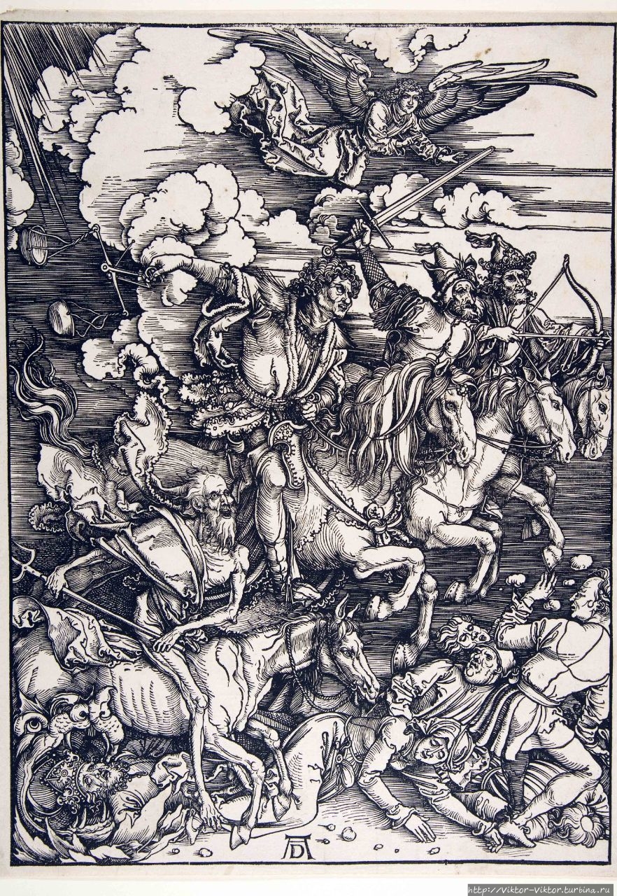 В 1496 — 98 годах Дюрер выполнил 15 ксилографий «Апокалипсис», иллюстрирующих последнюю книгу Нового Завета «Откровение Иоанна Богослова», которые принесли ему европейскую известность и прославили как непревзойденного мастера гравюры: «Дюрер совершил невозможное: не отказавшись от старой манеры рисунка, он вдохнул в нее жизнь, форма перестала подавлять содержание, ее условности на этот раз воспринимались как необходимость. Художник заставил поверить в происходящее». Гравюры Дюрера в Германии и Центральной Европе перестали стоить дешевле перчаток.