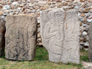 Все каменные барельефы найденные в районе Дворца танцоров хранятся в музее,