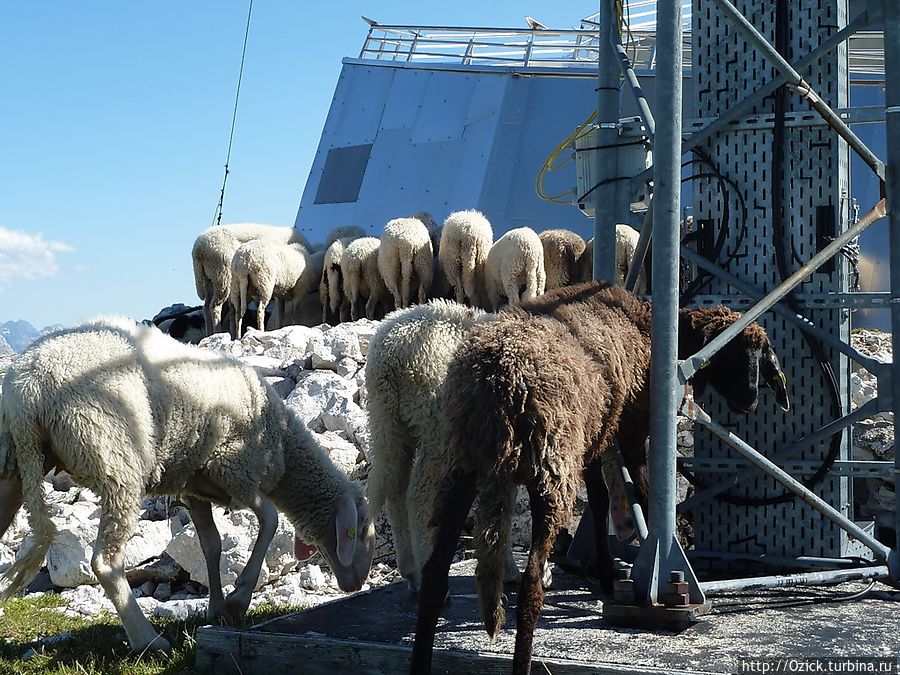 На самом верху есть странное строение, обшитое металлическими листами, куда можно подняться, и оттуда откроется панорама на 360 градусов на вершины Северных Альп.