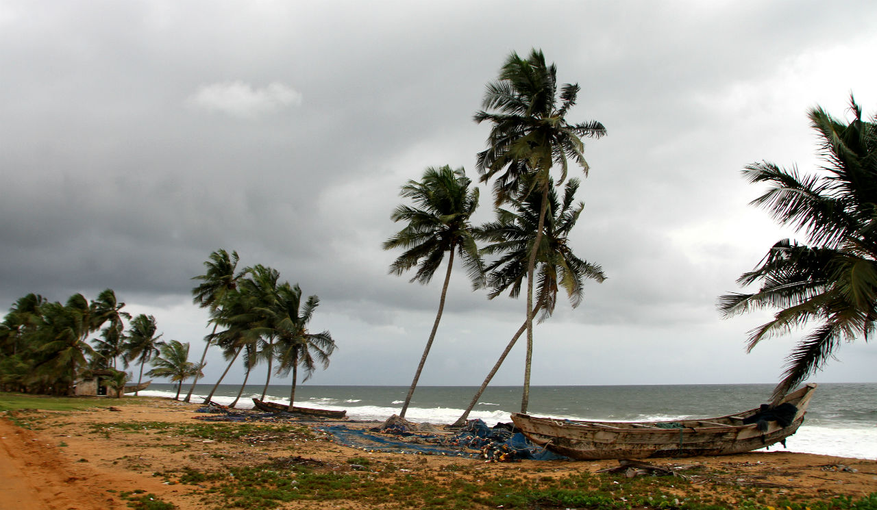 Рыбаки уже давно вернулись с уловом и отдыхали после тяжелого рабочего дня. Небо в этот послеобеденный момент было свинцовым и мрачным. Океан словно хамелеон пытался скопировать его цветовую гамму. Иногда появлялся ветер — их общий друг и начинал хулиганить, издеваясь над прибрежными красавицами-пальмами.
