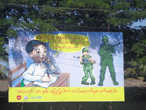 Гуляя по городу, можно обнаружить различные надписи на бирманского, иногда они продублированы на англ.яз. Например: "May I help you", это у входа в отделение полиции.