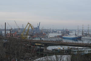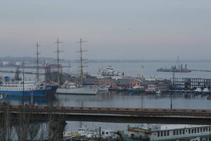 С моста открывается панорамный вид на порт.