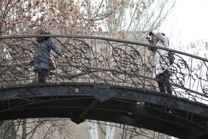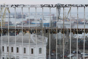 В конце Приморского бульвара разместился "Уголок Старой Одессы" - на небольшой территории собрали несколько разных памятников, переживших не одно десятилетие. А центром места является металлический мост, сплошь увешанный замками "на счастье", столько замков я еще ни на одном "брачном" мосту не видела.
