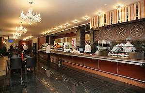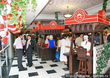 Украинская и европейская кухня: борщ, супы, картофель, рис, макароны, различные мясные блюда. Отдел соков-фреш.