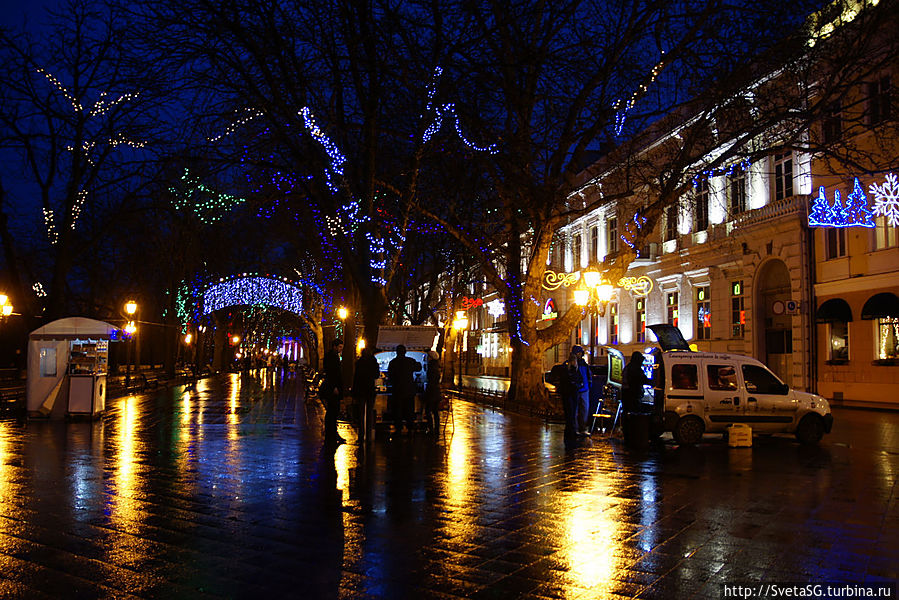 Вечером очень приятно прогуляться по Приморскому бульвару и полюбоваться новогодней подсветкой