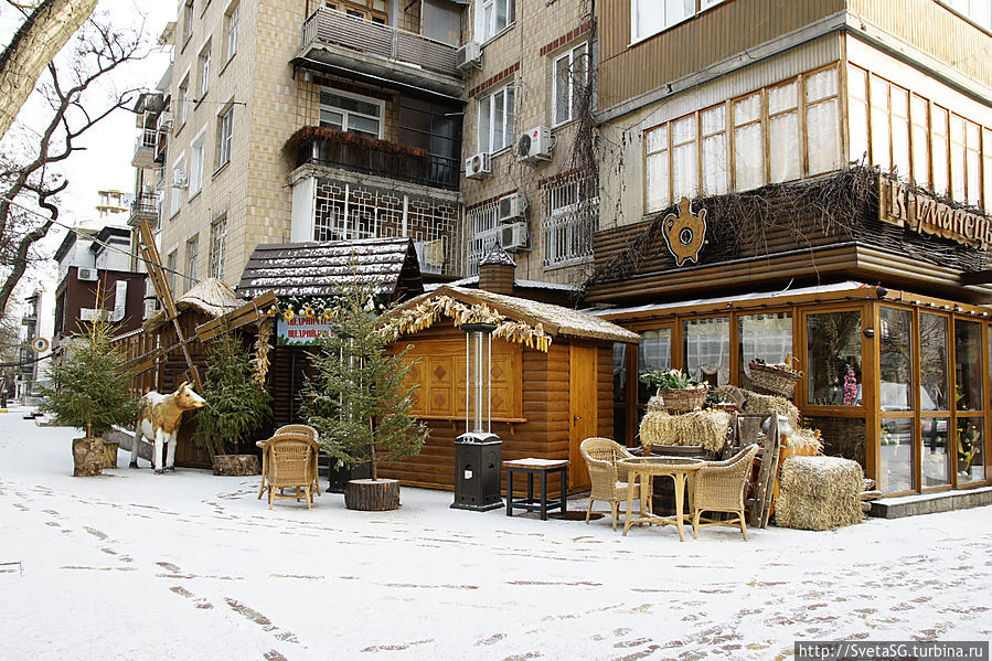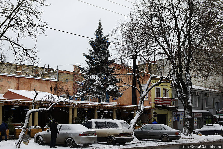 А это снова чайное место на Дерибасовской. Утром 7 января, припорошенное свежим снежком.