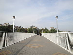 Тещин мост — про легенду можно прочитать, а общем, мост как мост. Только влюбленные развешивают на нем замки. Далее — бульвар Жванецкого