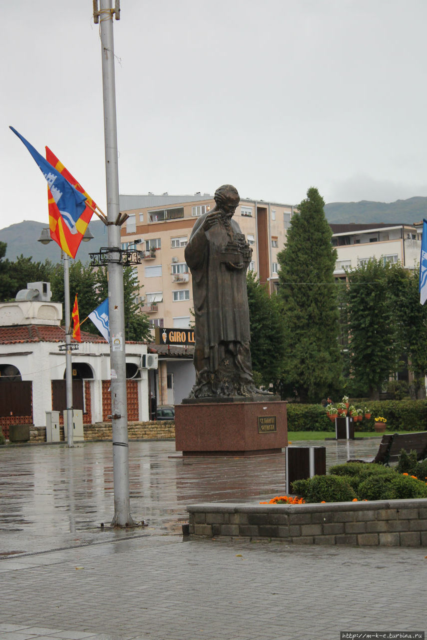 Каждый народ оставил здесь свой след. По местам так сказать боевой славы и удалось мне пройтись. Набережная с причалом отмечена памятниками Святому Клименту и Святому Науму — ученикам Святых Кирилла и Мефодия. Здесь в Охриде Святой Климент создал кириллицу, перевел на славянский язык Священное писание. Городской Университет и библиотека так же его рук дело.