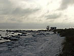 Снежный покров сопровождал меня до самой кромки моря, где преобладающим фоном становился зеленый цвет морской волны, оттеняемы голубым небосводом. Сесть тут и насладиться застывшим участком времени представляется самой лучшей идеей.