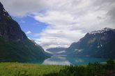 К сожалению, я не читаю по-норвежски... Но картинки доходчивы. Есть, правда, еще некая табличка на валуне с двумя датами и списком людей под ними. Дело в том, что 15 января 1905 года, с 1500-метровой горы Ramnefjell (Рамнефелл) сорвалась огромная глыба, объемом 50 тыс. м3 и весом более 125 тыс. тонн. Высота глыбы была 100 метров, а ширина – 50 метров. Её схождение сопровождалось интенсивным камнепадом. Общая масса горных пород, упавших в озеро Ловатнет, составила более 870 тысяч тонн. Вызванная камнепадом волна полностью уничтожила прибрежные деревни Итре Несдал и Бёдал.