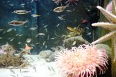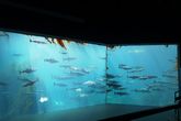 В гигантском аквариуме можно увидеть треску, сельдь, палтуса и много других рыб. Выглядят они скромно, расцветкой не блещут, некоторые особи поражают размерами. Именно в нём ежедневно проводится дайвинг — шоу: аквалангист спускается в резервуар для кормления рыб.