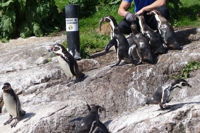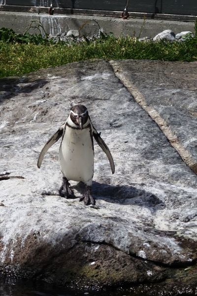 Ближайшая территория выделена пингвинам. Сами того не ведая, мы пришли незадолго до времени кормления. По этому поводу пингвины пребывали в ажиотаже, метались по вольеру и вытягивались в направлении калитки для смотрителя.