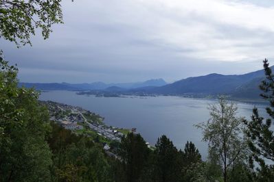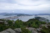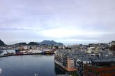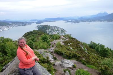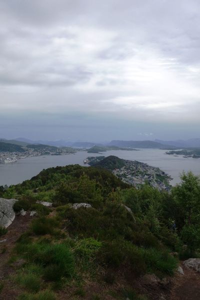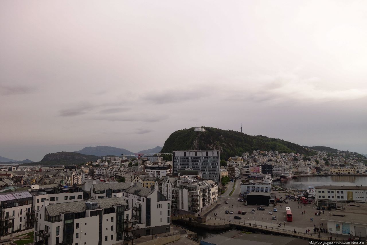 Конечно, чем выше мы поднимались, тем больше становилось видно близлежащих красот. Все острова Олесуннской территории, фьорд.... Да и густо застроенный центр с нового ракурса.