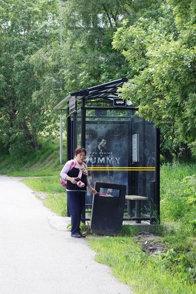 Мы видели её в прошлый приезд с Акслы, только не знали, да и не успели бы туда попасть. Зато сейчас нам ничто не мешало. Так что сразу после того, как корабль пришвартовался, мы дружно двинулись в путь. Первоначально в планах был пеший марш-бросок, но, увидев на стоянке супермаркета освободившееся большое такси, загрузились в него: гони, шеф! Хорошо, что мы сэкономили и силы, и время — до начала тропы 4 километра.