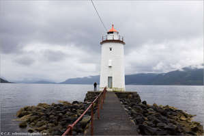 Во время обзорной экскурсии наш руководитель и вдохновитель, а проще говоря, сопровождающий тура Руслан свозил нас к маяку под Олесунном, сказав при этом, что это эксклюзивно и ни у кого больше не будет таких фотографий и впечатлений, как у нас. Мы не имели ничего против такого эксклюзива и с удовольствием прогулялись к маяку. Дождь, слава богу, закончился, а серые тучи или, лучше сказать, облака, прогулке не помеха.