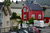 Интересно было посмотреть и на окраины города, увидеть как они выглядят.Там оказались типичные для Норвегии домики, примостившиеся у скал. И как у истинных патриотов государственный флаг перед домом. Это довольно распространённое явление. Норвежцы очень гордятся своей страной.