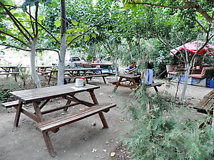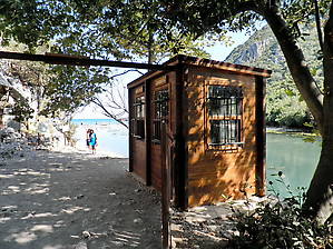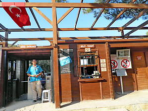 В начале каждого часа от этой остановки (ориентир — придорожное кафе) в начале каждого часа с 8 до 17 ходят долмуши в Олимпос. Обратно из Олимпоса к трассе — каждый час .
