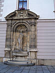 Фонтан Юлию Цезарю, по легенде основателю города. Взгляд его устремлён как раз на Михалский холм, где было обнаружено римское поселение. Этот фонтан самый большой, построен в 1725 году Яном Шаубергером.