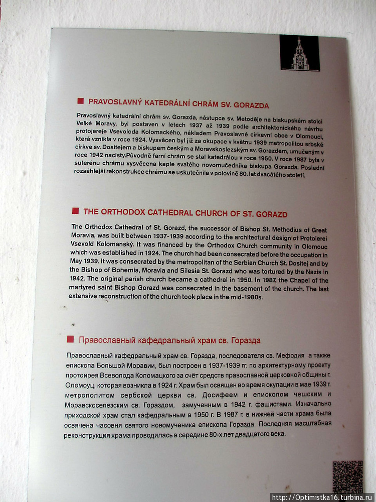 Больше нам ничего не удалось узнать. Я даже не собиралась писать об этом храме, но сегодня мне совершенно случайно в интернете попался материал, посвященный двум замечательным людям, имеющим непосредственное отношение к строительству храма св. Горазда в Оломоуце.