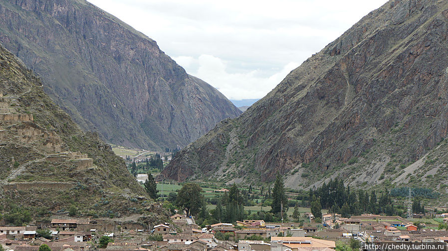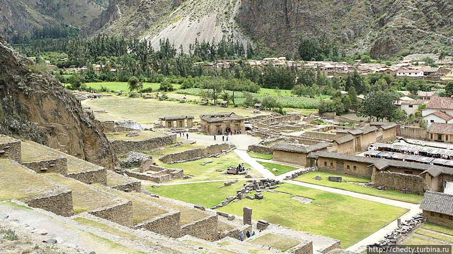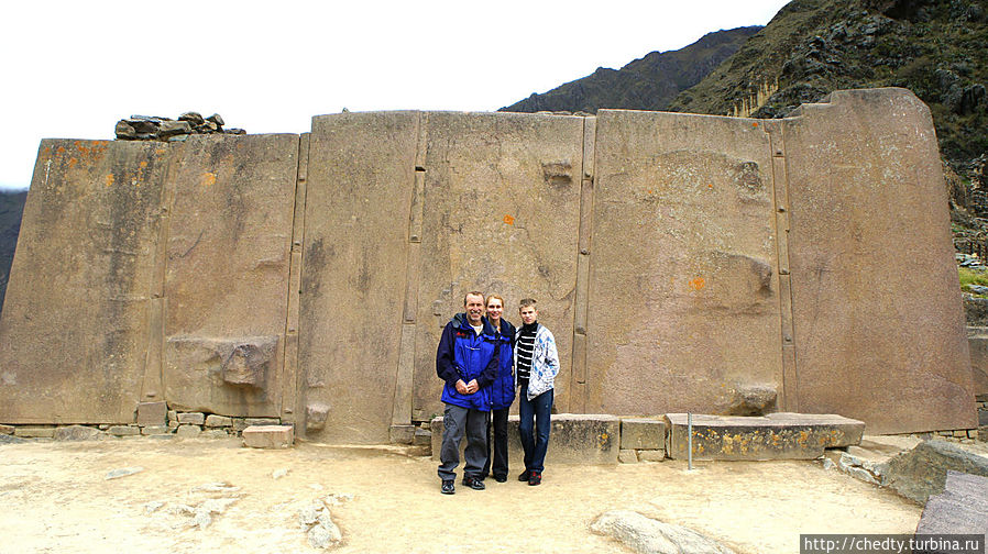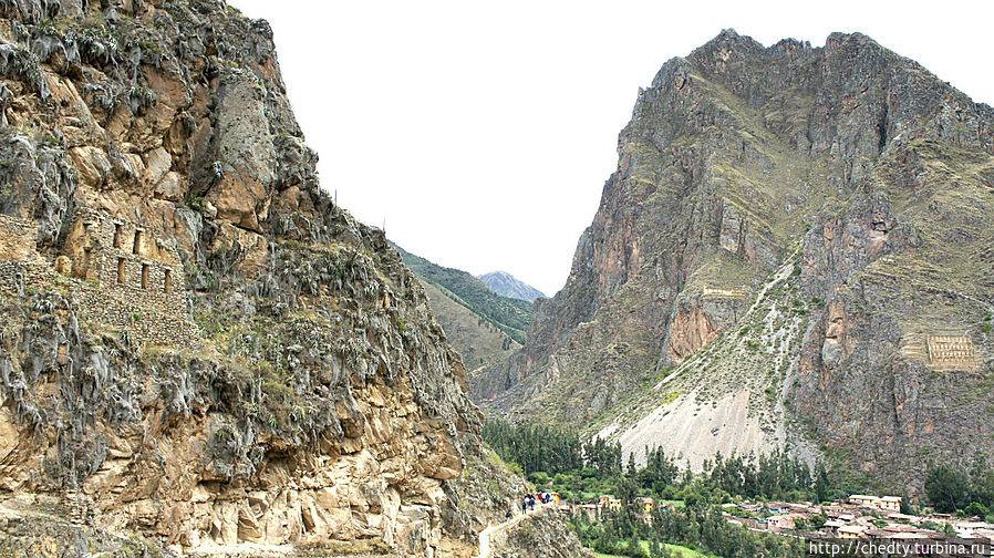 На третий день нашего путешествия по Перу началась его основная смысловая часть, знакомство с культурным наследством инков. Первая точка Ольянтайтамбо, храм-крепость на пересечении трех долин. Позиция стратегически очень выгодная, все вокруг просматривается на много километров. Долины внизу перекрыты каменными стенами. Но основная часть крепости расположенна на седловине гор по правому берегу. К ней ведет подъем по узкому карнизу, не больше двух воинов в ряд. При невозможности защищать весь периметр всегда можно отступить в цитадель, которая по сути неприступна. В крепости есть источник воды, а выше нее прямо в скале высечены склады продовольствия.