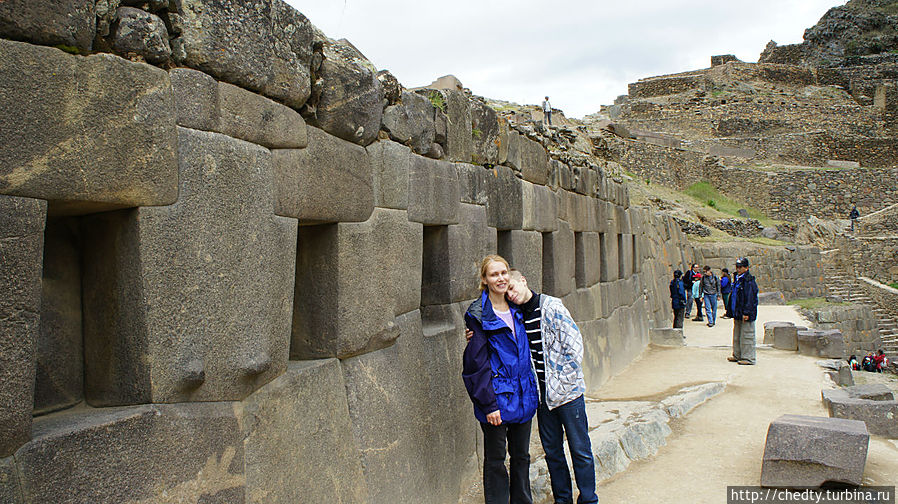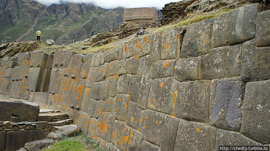 На самих колосальных блоках терщин нет, ладно сумели удачно выбрать монолит, но ведь уже после первой обработки простоял больше пятисот лет. Очень хорошее понимание свойств горных пород. В самой нижней части расположены широкие каменные лавки. Возможно инкским жрецам просто нравилось на них посидеть, полюбоваться закатом, и вообще по последнему постановлению перуанского правительсва, инки человеческих жертв не приносили.