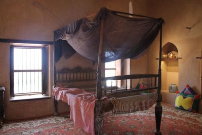 Немного справки. Название крепости переводится, как финиковая пальма. Первое упоминание относится к 17 веку. Построена крепость на скальном выступе и имеет неправильную форму. Два этажа предназначались для отдыха султана, как в летний , так и в зимний период. Кроме этого в период борьбы с португальскими колонизаторами здесь был один из центров сопротивления.