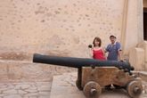 Покупка билетов это последнее, что напоминает в крепости о музее. Дальше такое ощущение, что ты попал к себе домой. Поднимаешься по лестнице. Везде к стене приставлены винтовки времен войны с колонизаторами. Сначала очень робко мы начинаем рассматривать экспонаты и о чудо они не прекручены. Очень осторожно беру винтовочку и изображаю из себя стрелка. Площадка первого этажа украшена большой пушкой. Ядра свободно можно попробовать пристроить в дуло. Не хватает только поджигающего устройства, чтобы сделать выстрел.