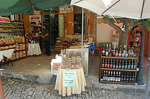 Для туристов открыты магазины с неизбежным ассортиментом кипрской деревени : вино, мёд, сладости...