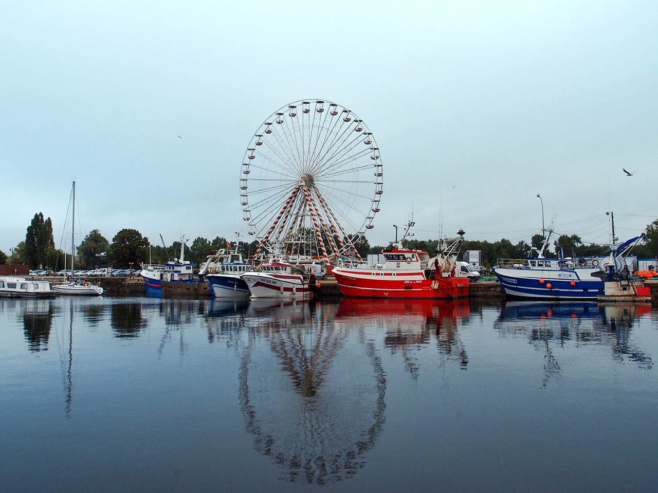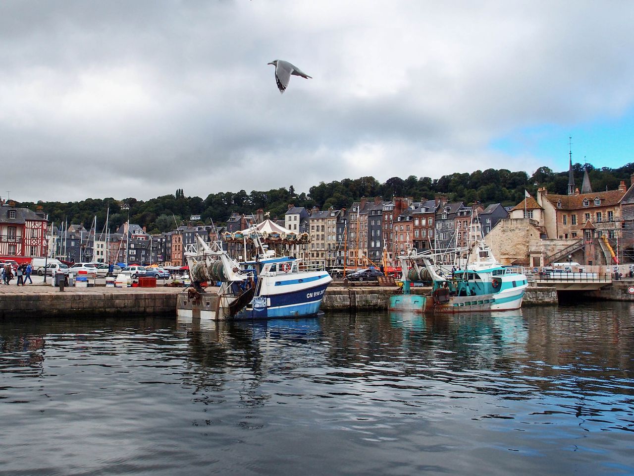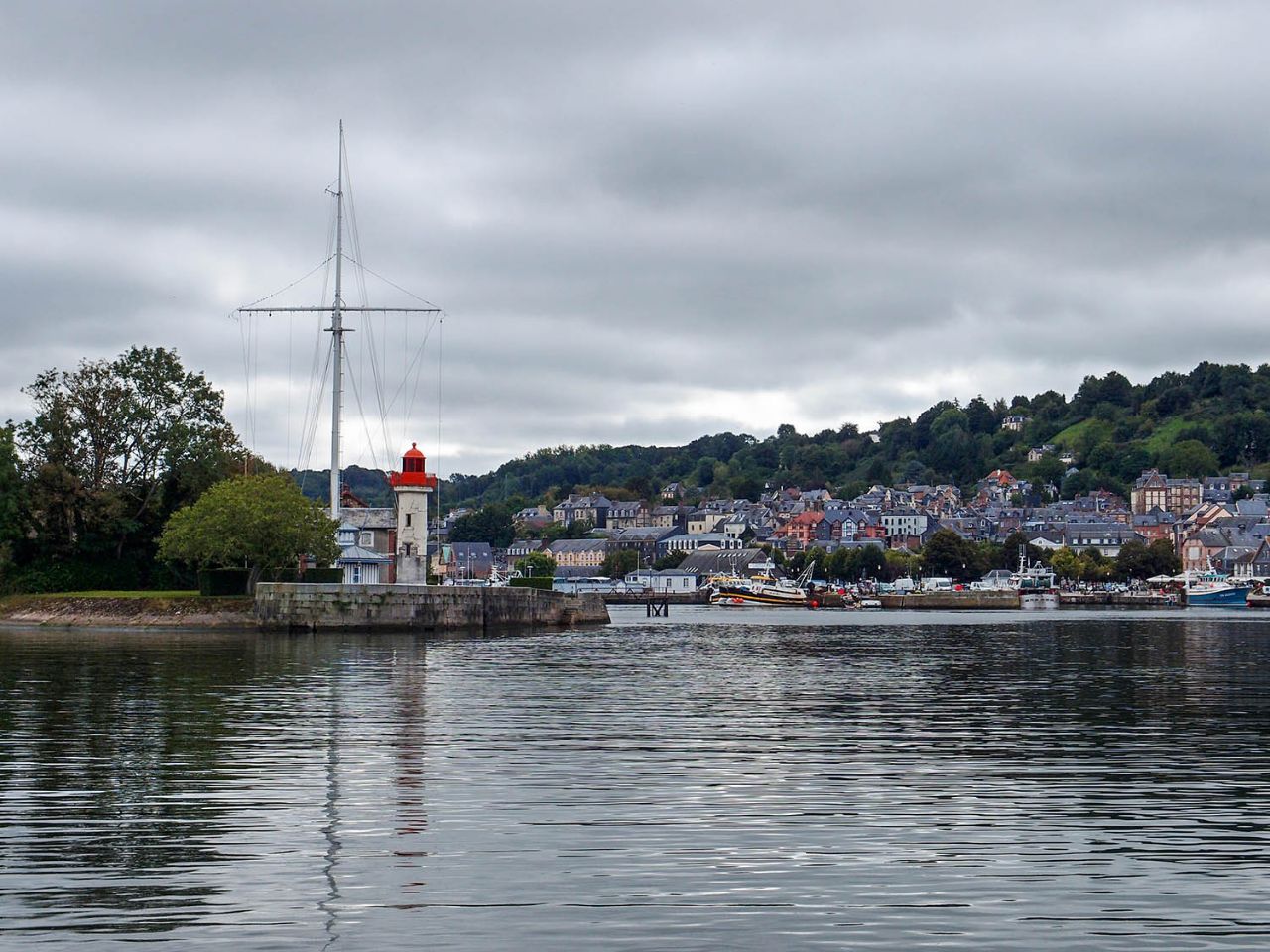 Ещё с кораблика можно разглядеть белеющие вдали краны грузового порта Гавра. Это он в своё время отнял у Онфлёра былую славу.