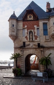 Вообще, дом Лейтенанта выглядит немного несуразно, но это из-за того, что к нему примыкают ещё два уцелевших фрагмента: часть каменной стены с одной стороны и старые ворота города Port de Caen с другой. Ворота представляют собой массивную каменную арку, увенчанную статуей Святой Девы Марии.