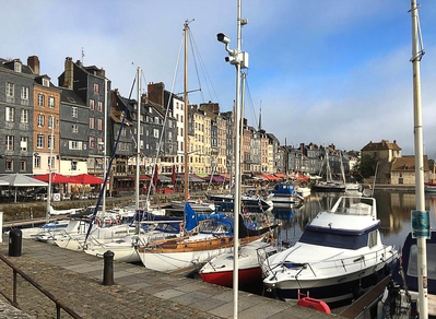 Выходя к старой гавани, буквально теряешься от пестроты и изобильности визуального ряда. Горизонталь неба и воды, штрихи-вертикали яхтенных мачт, и фоном к этому — строй узких цветных домов на берегу со множеством отражений… Зрение слегка расфокусируется и ты вдруг ощущаешь то неуловимое, странное марево, тот «особый свет», ради которого Онфлер так любили импрессионисты.