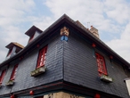 Фахверк не парадный, не раскрашенный на забаву туристу, реально древний. А другие дома отделаны, словно чешуйками, кусочками деревянной крашеной черепицы.
