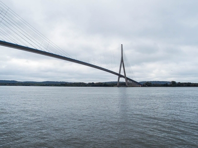 Потраченного на водную прогулку полтора часа жаль. Кораблик выплывает к широкой части устья Сены и начинает нарезать круги возле знаменитого моста «Нормандия». Больше смотреть нечего. Но если вы любитель мостов, то, признаем, конечно, что «Нормандия» впечатляет, это один из самых длинных подвесных мостов в мире. А с тех пор, как его изобразили на купюре номиналом 500 евро, мост превратился в популярный во Франции туристический объект и стал известен всем, кто только держал в руках такую денюжку.