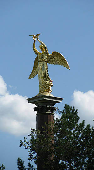 На углу улицы Постникова и Паркового проспекта в сквере имени 4 апреля была открыта в 2008г. архитектурно-скульптурная композиция "Добрый Ангел Мира".
