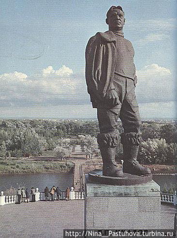 Бронзовая скульптура в шесть метров на семиметровом пьедестале хорошо видна с улицы Советской, Набережной и из парка имени В. П. Чкалова.
