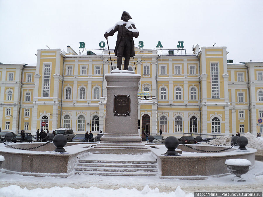 А вот встречает и провожает жителей и гостей города ученый — исследователь оренбургской губернии Петр Рычков. Наряду с губернатором Иваном Ивановичем Неплюевым Рычков был инициатором создания Оренбургской губернии. Но сподвижники называли его не только основателем, но еще и певцом этих мест. Памятник ему установлен на привокзальной площади.