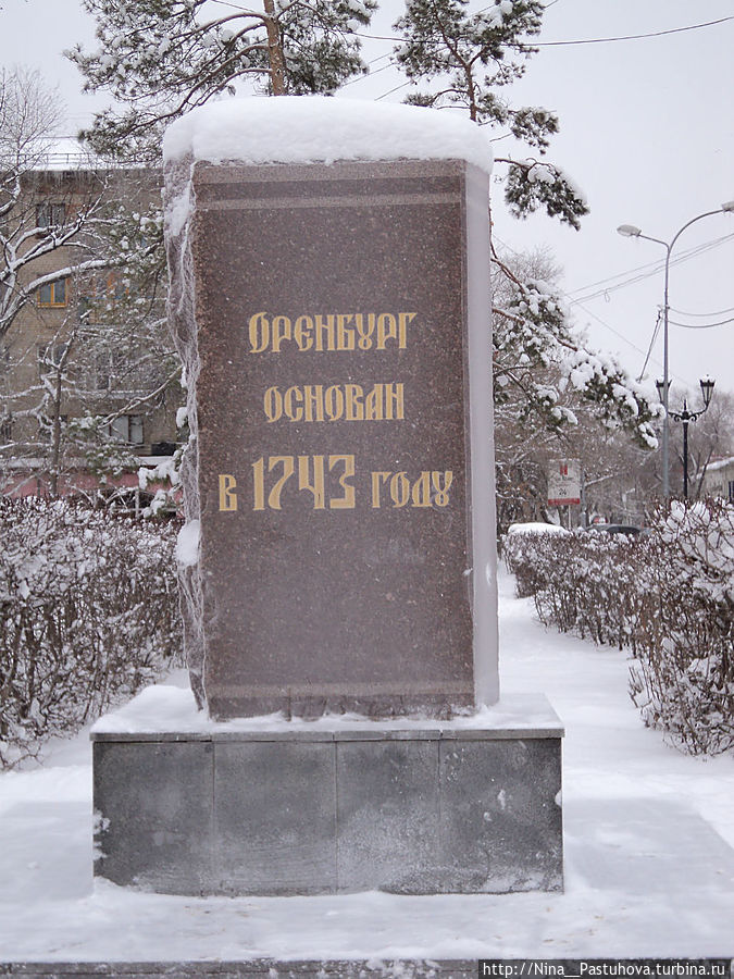 Начнём со сквера им. Осипенко. Здесь установлена Стела в честь основания в 1743 году Оренбурга. Автором её является В. М. Кузнецов. На граните славянским шрифтом высечено: "Оренбург основан в 1743 году".