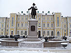 А вот встречает и провожает жителей и гостей города ученый — исследователь оренбургской губернии Петр Рычков. Наряду с губернатором Иваном Ивановичем Неплюевым Рычков был инициатором создания Оренбургской губернии. Но сподвижники называли его не только основателем, но еще и певцом этих мест. Памятник ему установлен на привокзальной площади.