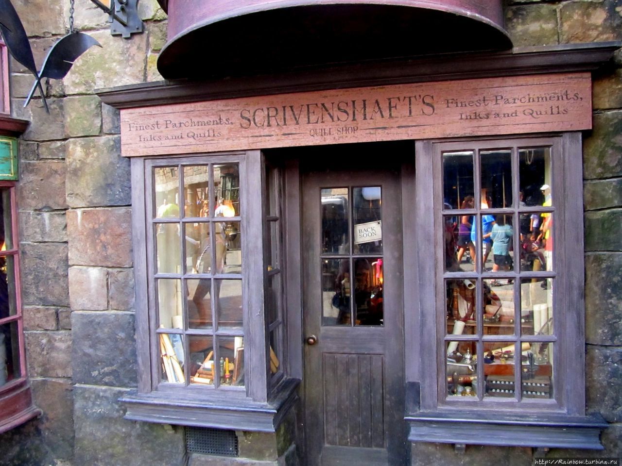 Вот, например, Scrivenshaft's Quill Shop. Тут я, честно сказать, затрудняюсь с переводом. Но в книге этот магазин был расположен в другом месте, в Косом переулке в Лондоне, рядом с книжным магазином. Здесь продавали все письменные принадлежности, все эти волшебные перья, чернила, пергаменты.