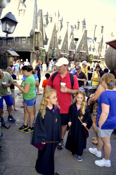 Два года назад мы подумали: а куда бы опять поехать на день рождения? И в тот раз выбор пал на тематические парки в Орландо — Universal и Disney. Известно, что Universal- это тематический парк голливудской кино индустрии, состоящий из частей-декораций, воспроизводящих самые известные фильмы. То есть, попадая туда, чувствуешь себя внутри фильма. Все остальные фильмы нас интересовали весьма поверхностно, и хоть парк мы обошли весь, рассказывать о нем не буду. Потому что главным в тот день для нас было посещение части, которая называется "Волшебный мир Гарри Поттера". Впрочем, это не было просто посещение, это было погружение в этот мир, переход почти в другую реальность.